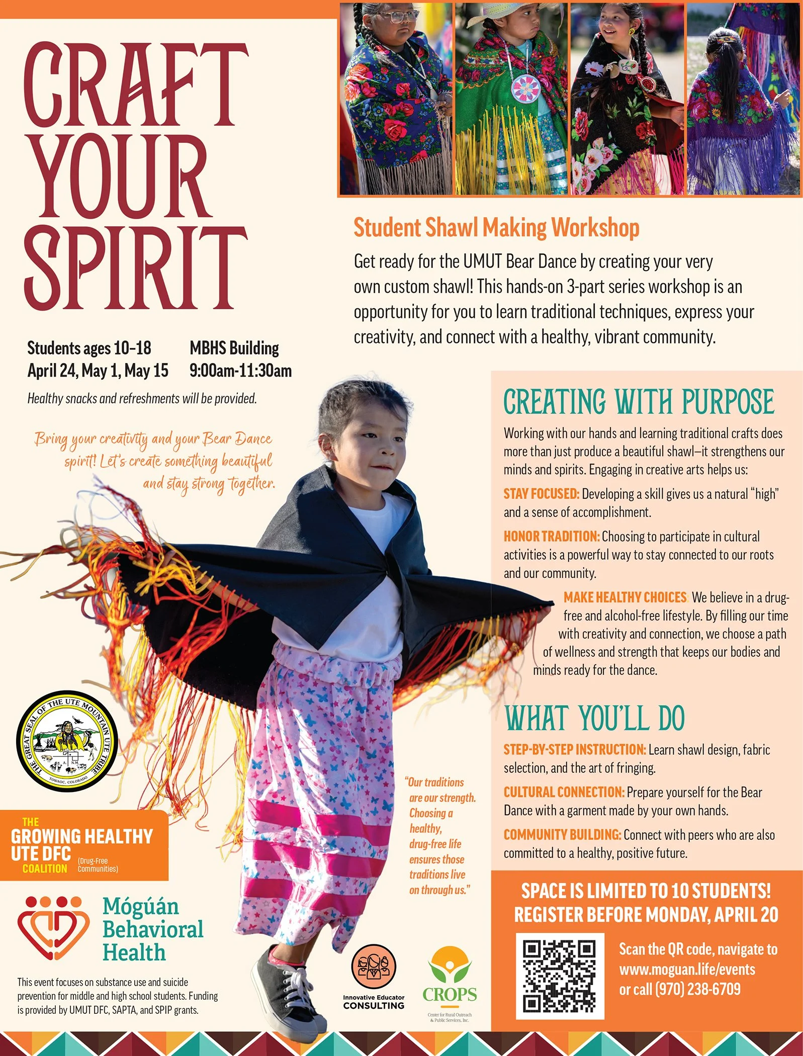 Get ready for the UMUT Bear Dance by creating your very own custom shawl! This hands-on 3-part series workshop is an opportunity for you to learn traditional techniques, express yourcreativity, and connect with a healthy, vibrant community.
